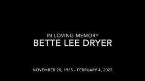 Bette was born on November 28th, 1935, in Astatula, Florida to Virgil Lee and Sarah Atz. She married Harry Dryer (Trenton, Missouri) on January 9th, 1963, and started a family in Tampa, Florida. After the birth of their fourth child the family made the move north with a short stop in Trenton, Missouri. Soon they relocated to Indianola, Iowa where Bette took her job as mother and wife very seriously. Meals were important, and dinners were the highlight of everyone's day. Attendance was required, and conversation and laughs were guaranteed. Raising the four kids was her priority, and one that she did with compassion, expectations, and love.