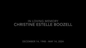 Christine Estelle Boozell, 75, of Indianola, passed away Tuesday, May 14, 2024 at home. A Celebration of Life will be held 4 p.m., Saturday, June 1, 2024 at Overton Funeral Home. Visitation will be held from 2 to 4 p.m. prior to service.