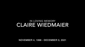 Funeral Mass for Claire Elizabeth Wiedmaier, 23, who went to be with the Lord Friday, December 3, 2021, will be held 10 a.m., Wednesday, December 8, 2021 at St. Thomas Aquinas Catholic Church in Indianola. Following the mass, a burial will be held at the Indianola I.O.O.F. Memorial Gardens Cemetery.