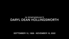 Daryl is survived by his daughters, Elizabeth (Cody) Brommel, Erin (Isabel) Hollingsworth and Em Hollingsworth; partner, Irene McCoy; grandchildren, Jake, Cailee, Bella, Caden, and River; father, Squire "Bud" (Wanda) Hollingsworth; sisters, Maggie Hollingsworth-Estes and Kelly (Ellsworth) Helm. He was preceded in death by his mother, Ellen Sargent; brother-in-law Jim Estes.