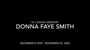 Celebration of Life Services for Donna Faye Smith, 94, of Des Moines, will be held at 2 p.m., Sunday, December 8, 2024, at Overton Funeral Home. The family will greet friends one hour prior to services from 1 to 2 p.m. at the funeral home.