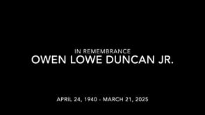 Owen Lowe Duncan Jr. was the oldest of three sons of Owen Lowe and Dorothy (Sammons) Duncan. He grew up in Huntington, W. Va., where a stint driving a truck for his father's lumber business — Duncan Box and Co. — convinced him to continue his education.